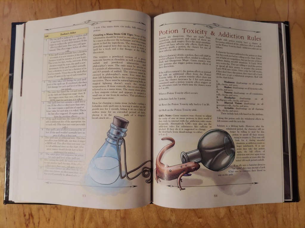 What’s inside I hear you ask? Why 170 pages of gear and services related excellence! Including: alternate starting wealth rules, animals, crafting, burden rules (encumbrance – you know you want it!), d100 Trinkets & Curiosities table, extensive potions list (with BREWING rules), d100 Potion Toxicity table, meals, travel, vehicles, trade goods, MASSIVE section on services, and a superb suite of profession based d12 loot tables to find out exactly what that bandit, baker, or dock worker had on them before your party accidentally killed them with a stray axe to the face.