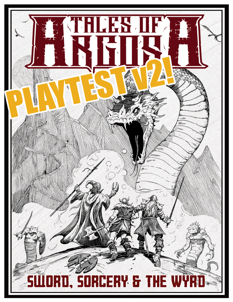 So as all the cool kids already know, Tales of Argosa (aka Low Fantasy Gaming 2e) is currently in the works. Playtest PDF v1 went out to everyone with LFG Deluxe in late Sept, and I’m happy to announce Playtest v2 is now available! As before, the PDF has been uploaded as a bonus file to the LFG Deluxe entry on DTRPG – simply download at your convenience 🙂 Version 2 is a more optimised file (60mb or so) and should run more smoothly using your favourite PDF viewer (Acrobat Reader works well).