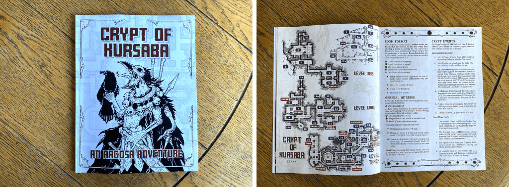 Adventure Framework #69 Crypt of Kursaba is now available in colour softcover for $9.95 (includes the PDF). My current plan is to make AF #67 & #68 into softcovers as well, after I tweak their format slightly to match Crypt. Hopefully they’ll be out next month 🙂